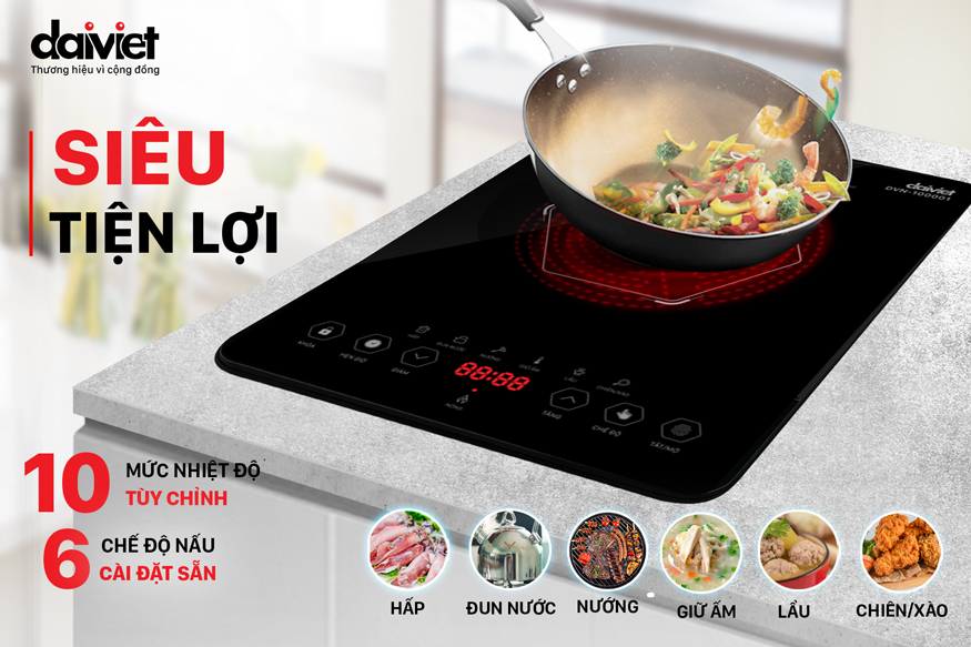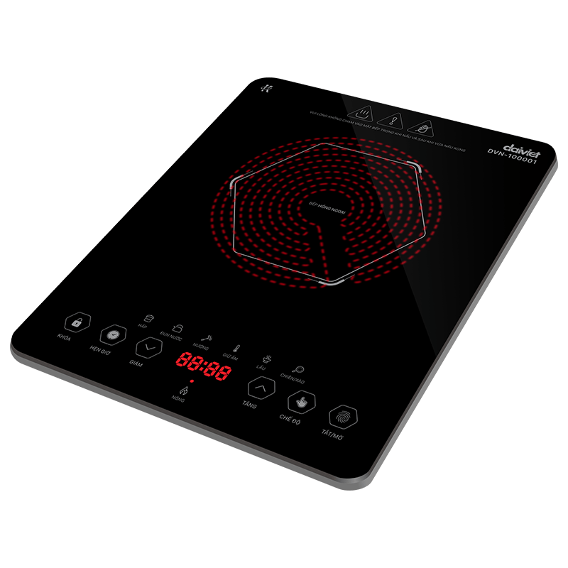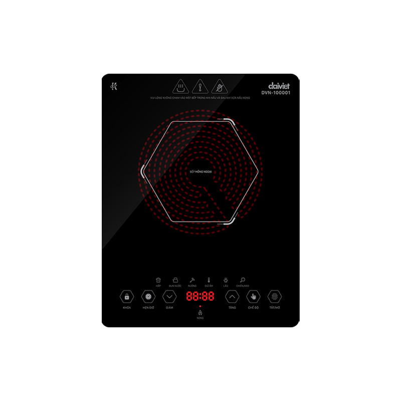 Bếp còn có chức năng bảo vệ chênh lệch điện áp, cảnh báo nhiệt dư hoặc tự động tắt bếp khi nóng quá tải để đảm bảo an toàn khi sử dụng.