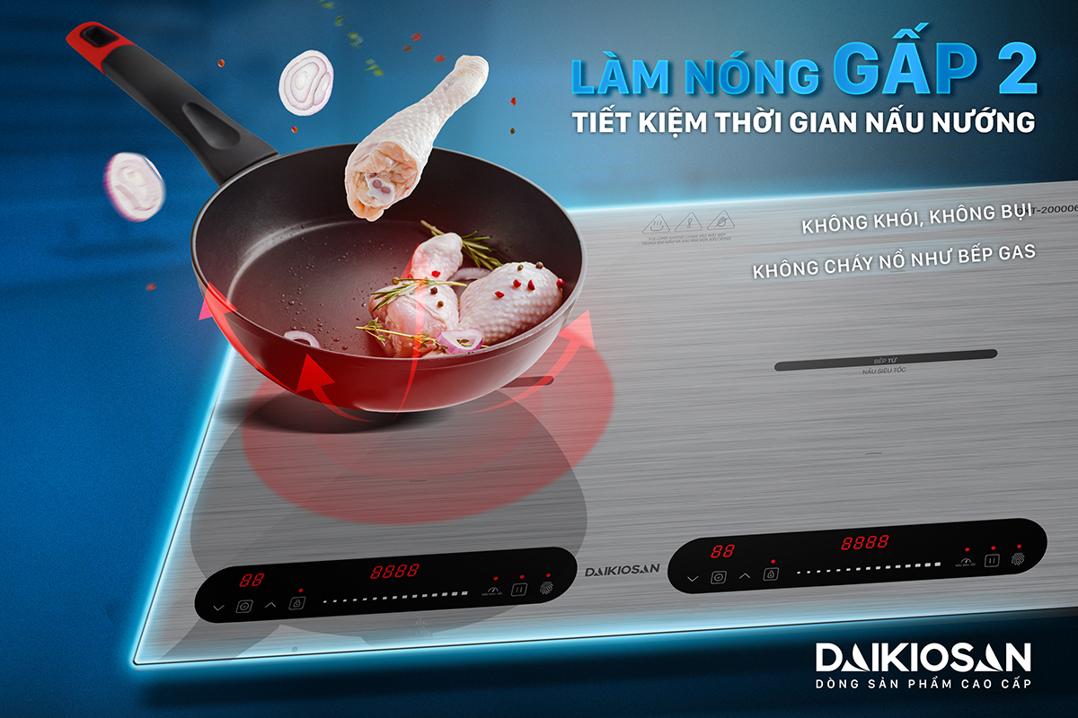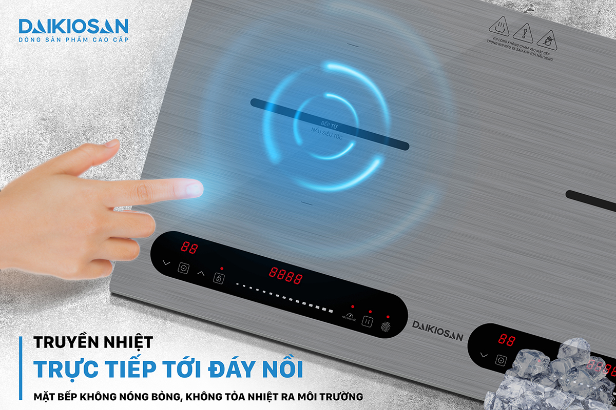 Khả năng truyền nhiệt nhanh của bếp cũng giúp mọi món ngon đều được nấu chín nhanh chóng, nên bếp điện từ 2 vùng nấu DKT-200006 là giải pháp hoàn hảo cho những gia đình bận rộn, muốn ăn ngon tại nhà mà vẫn tiết kiệm thời gian nấu nướng. Ngoài ra bếp có nhiều mức độ nhiệt khác nhau, tùy vào từng món ăn mà bạn có thể lựa chọn chế độ phù hợp.