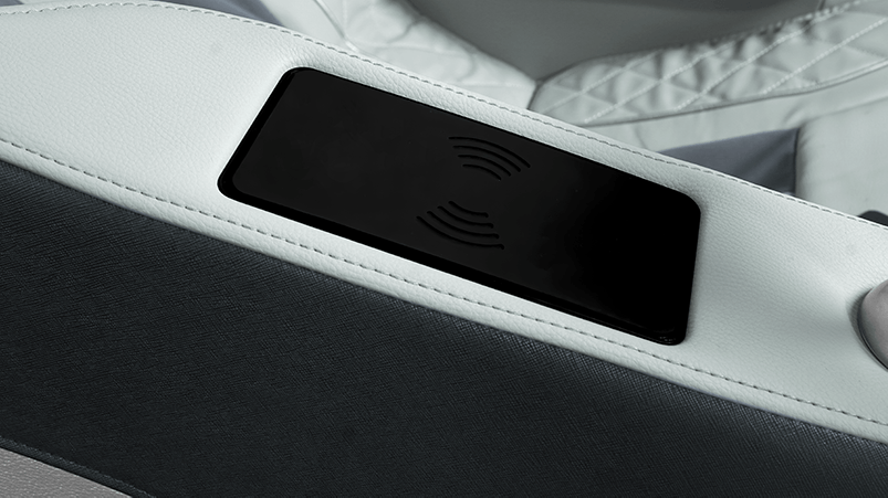 Siêu phẩm 3D này được tích hợp sạc pin không dây vô cùng hiện đại. Bạn chỉ cần lên ghế và đặt máy lên phần sạc thì pin sẽ được tự động xạc đầy.