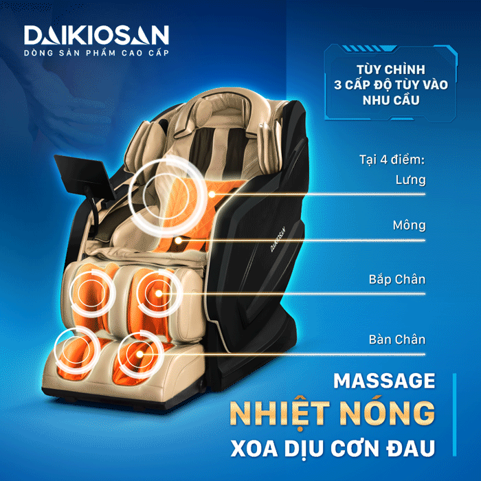Đây là chiếc ghế massage toàn thân sở hữu phần sưởi ấm nhiệt bằng sợi carbon tại nhiều điểm gồm lưng, mông, bắp chân, bàn chân. Chế độ này có thể tùy chỉnh 3 cấp độ tùy vào nhu cầu, sở thích của bạn.