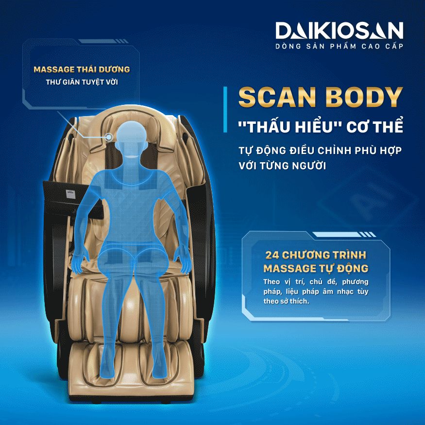 | Scan cơ thể | Có - để điều chỉnh vị trí massage phù hợp từng người |