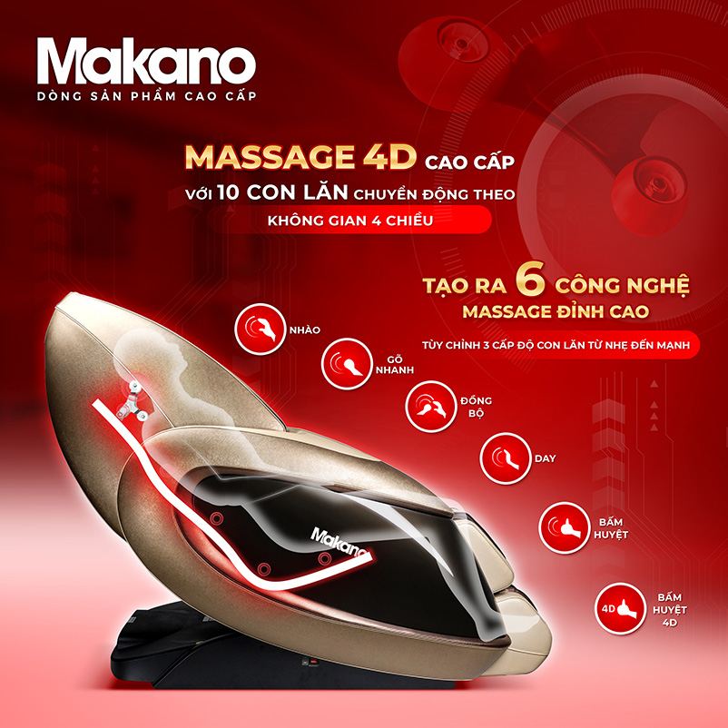 Ghế massage Makano DVGM-30003 là dòng sản phẩm ghế massage cao cấp nhất hàng đầu hiện nay. Sản phẩm sở hữu công nghệ massage 4D đỉnh cao thông minh với trí tuệ nhân tạo AI kết hợp với liệu pháp massage trị liệu Đông Y giúp tăng hiệu quả massage cho bạn những phút giây thư giãn trọn vẹn.