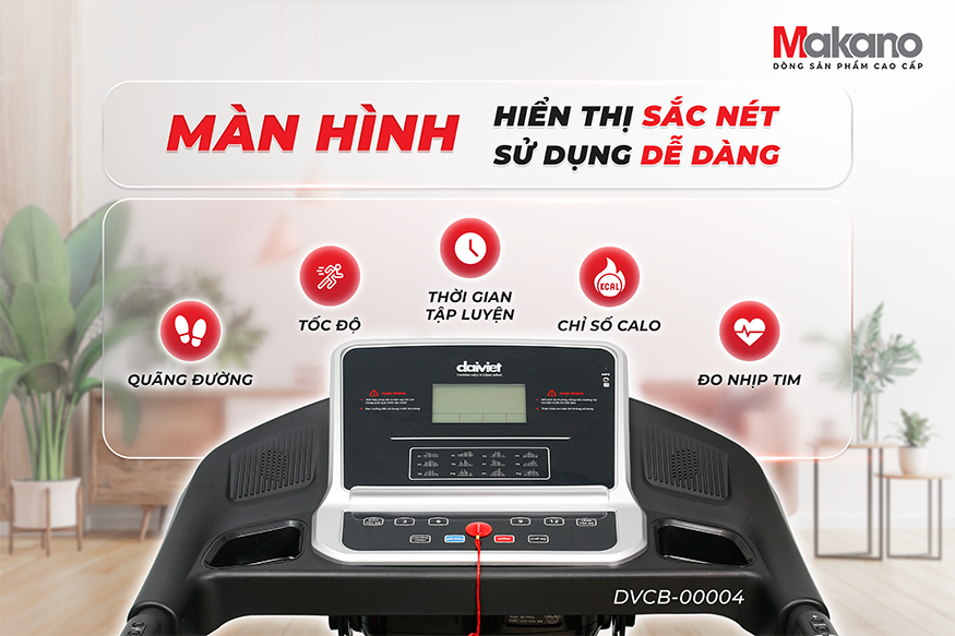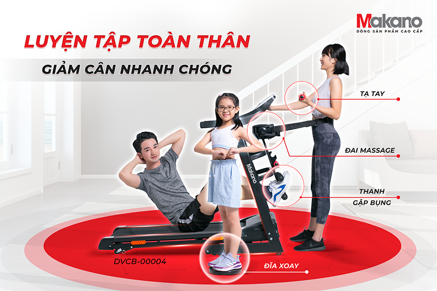 Máy chạy bộ đa năng MAKANO DVDB-00004 được phân phối bởi Hukaki - Đơn vị nằm trong Top 500 Doanh nghiệp tư nhân lớn nhất Việt Nam 2020 với hệ thống đại lý, trạm bảo hành khắp 63 tỉnh thành.