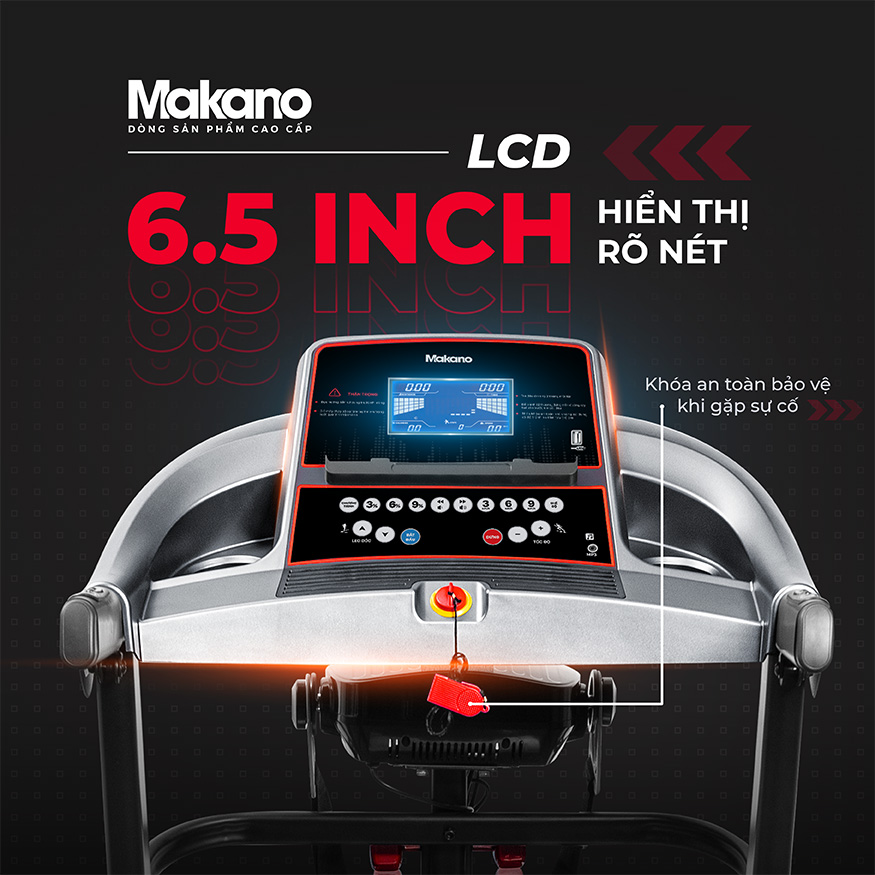Với tone màu xám đen cùng màn hình Led display, khung máy to chắc chắn… Máy chạy bộ Makano MKCB-00001 xứng đáng là sản phẩm của dân thể thao, người mê style hiện đại, sang trọng.