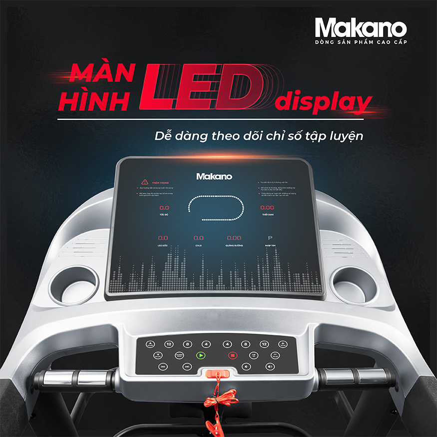 Việc theo dõi nhịp tim, quãng đường, calo, thời gian, chương trình… trong suốt quá trình luyện tập thể dục là việc vô cùng quan trọng. Chính vì vậy, Máy chạy bộ đa năng Makano MKCB-00002 đã có màn hình Led display sang trọng giúp hiển thị rõ ràng các chỉ số trong quá trình tập luyện để có thể kiểm soát, thay đổi theo nhu cầu mong muốn của người dùng.