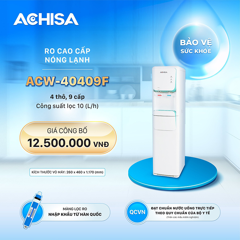 Muốn có nước lạnh bạn cần tủ lạnh, nước nóng thì phải dùng bình nước siêu tốc nhưng chi phí 2 thiết bị này thì không hề rẻ và chất lượng nước cũng chưa hẳn an toàn. Giải pháp cho cả 2 băn khoăn trên chính là máy lọc nước nóng lạnh RO Achisa ACW-40409F cho gia đình, văn phòng, nhà hàng...