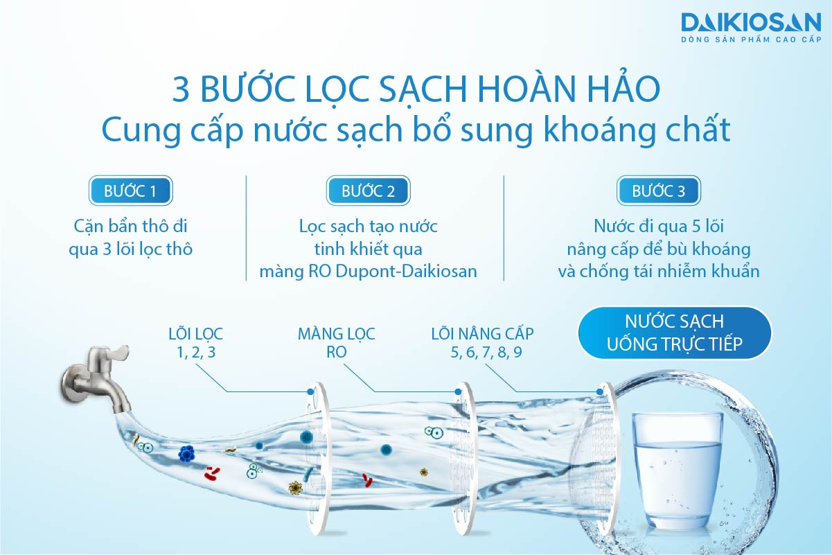 Máy lọc nước RO nóng nguội lạnh Daikiosan DSW-32709H3 thích hợp sử dụng cho nhiều nguồn nước khác nhau.