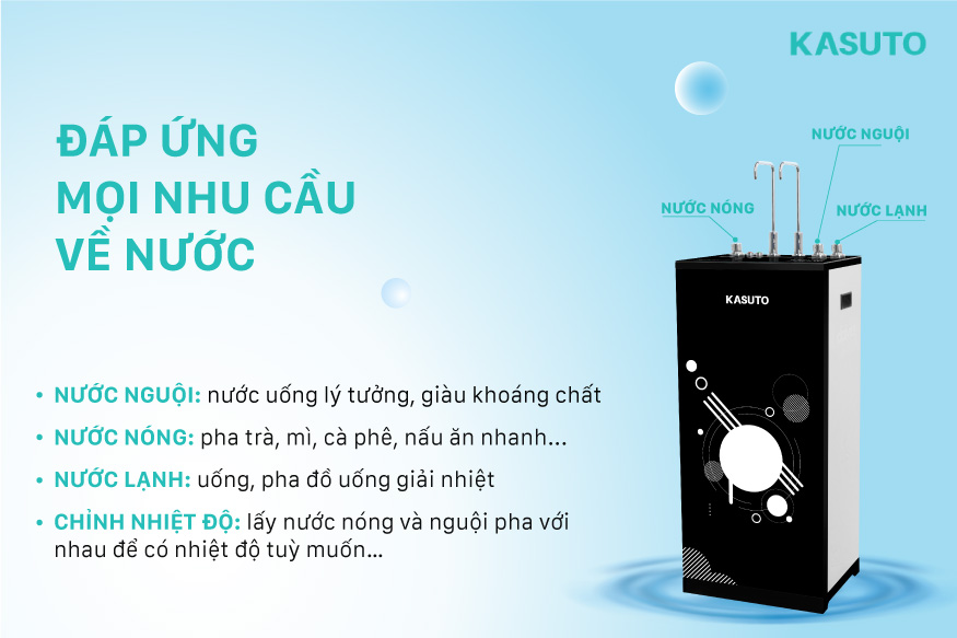 Máy lọc nước RO nóng nguội lạnh Kasuto KSW-42710H chính là giải pháp cho cuộc sống tiện ích, cung cấp nước sạch 3 loại: Nóng - Nguội - Lạnh tốt cho sức khỏe cho người dùng.