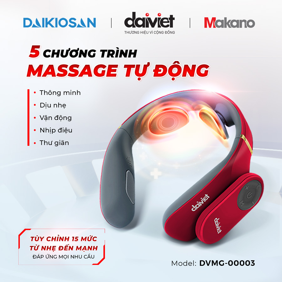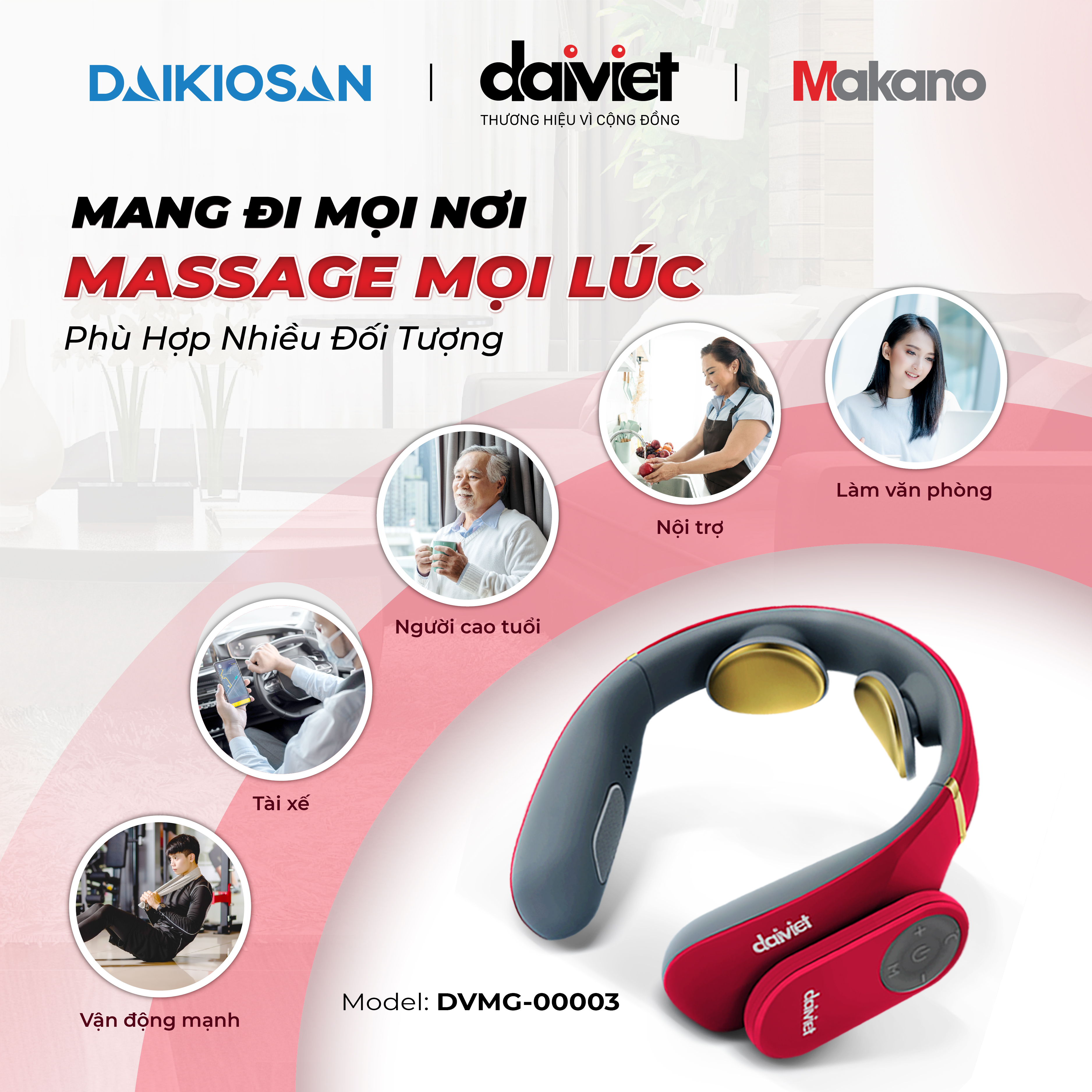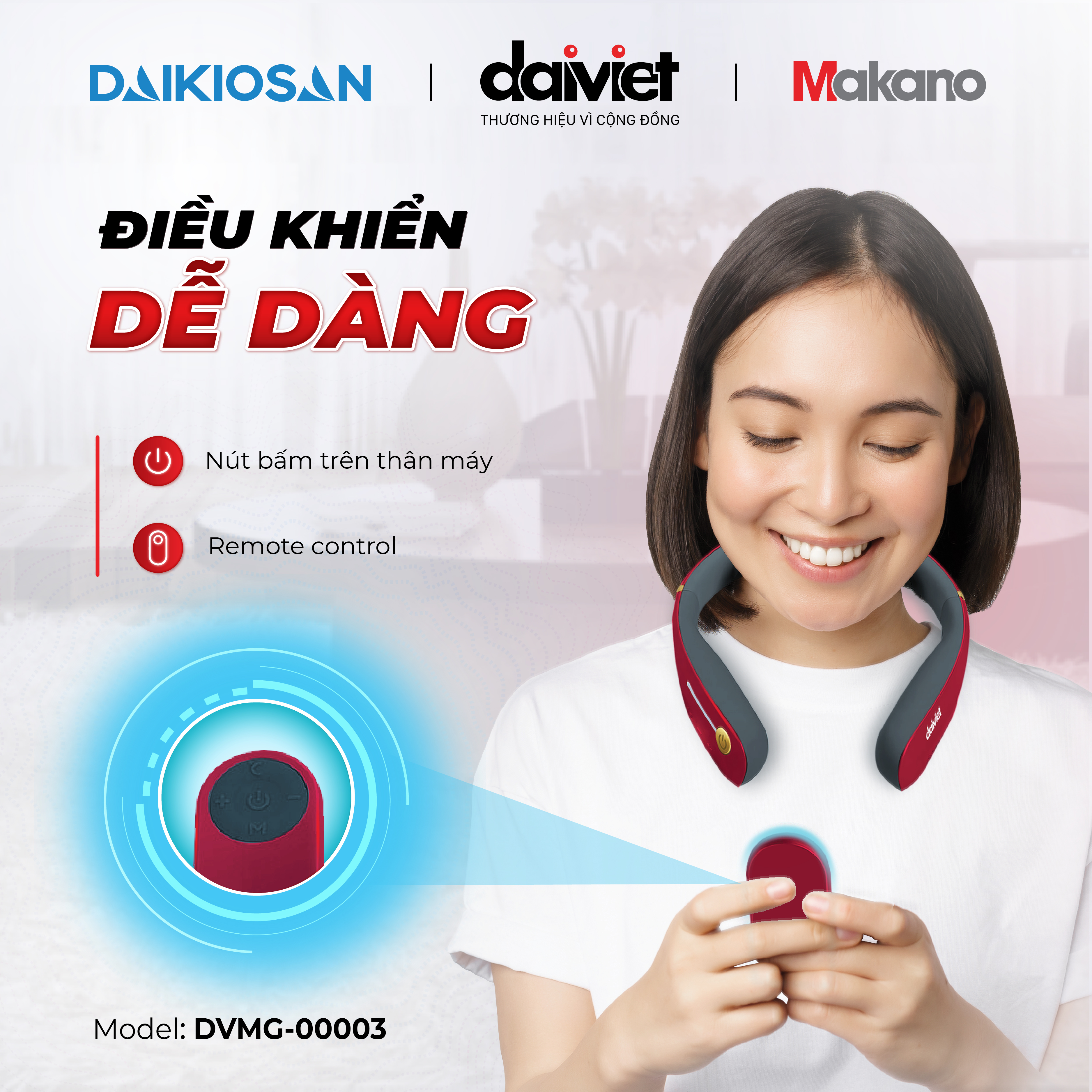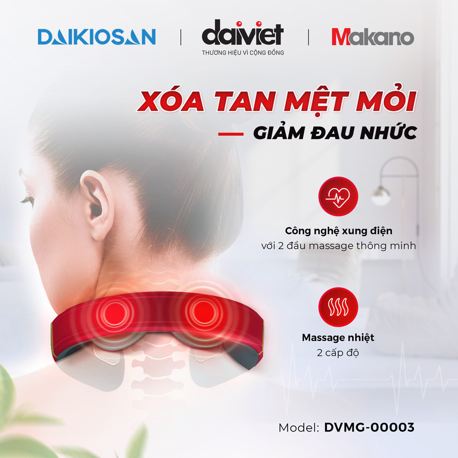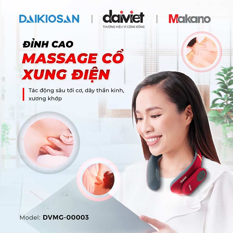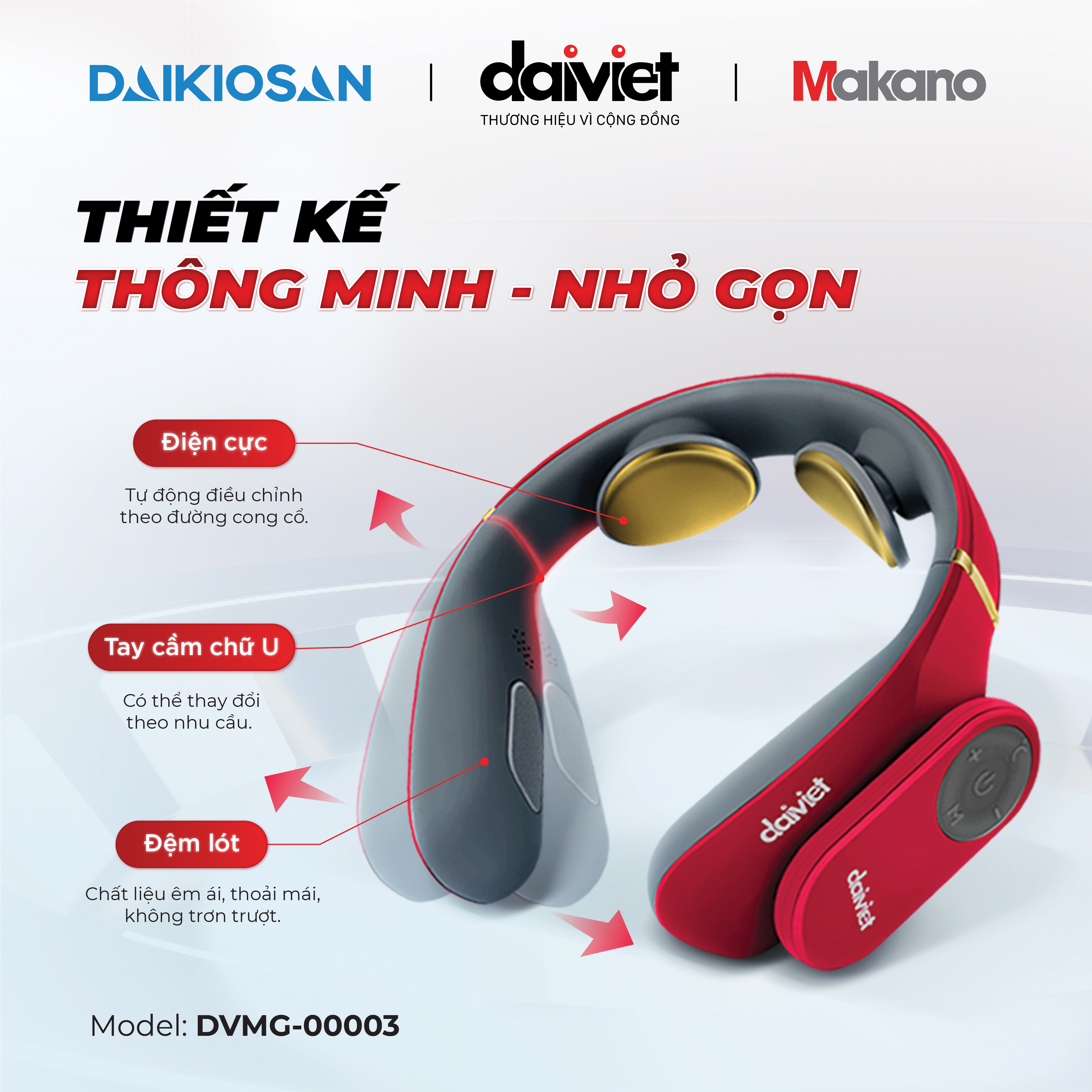 Để tác động sâu tới vùng cơ, dây thần kinh, xương khớp..., DVMG-00003 sử dụng công nghệ dòng điện tần số thấp với 2 đầu massage thông minh có thể tác động lên tất cả các đốt sống vùng cổ, gáy.