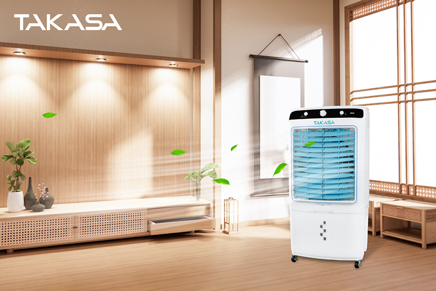 Quạt điều hòa dân không khí Takasa TKA-06000C làm mát không gian phòng nhanh chóng so với các loại quạt thông thường, không làm mát sâu như máy lạnh vì nhờ khả năng làm mát bằng hơi nước.